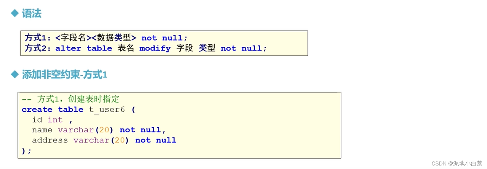 3.非空约束(not null)