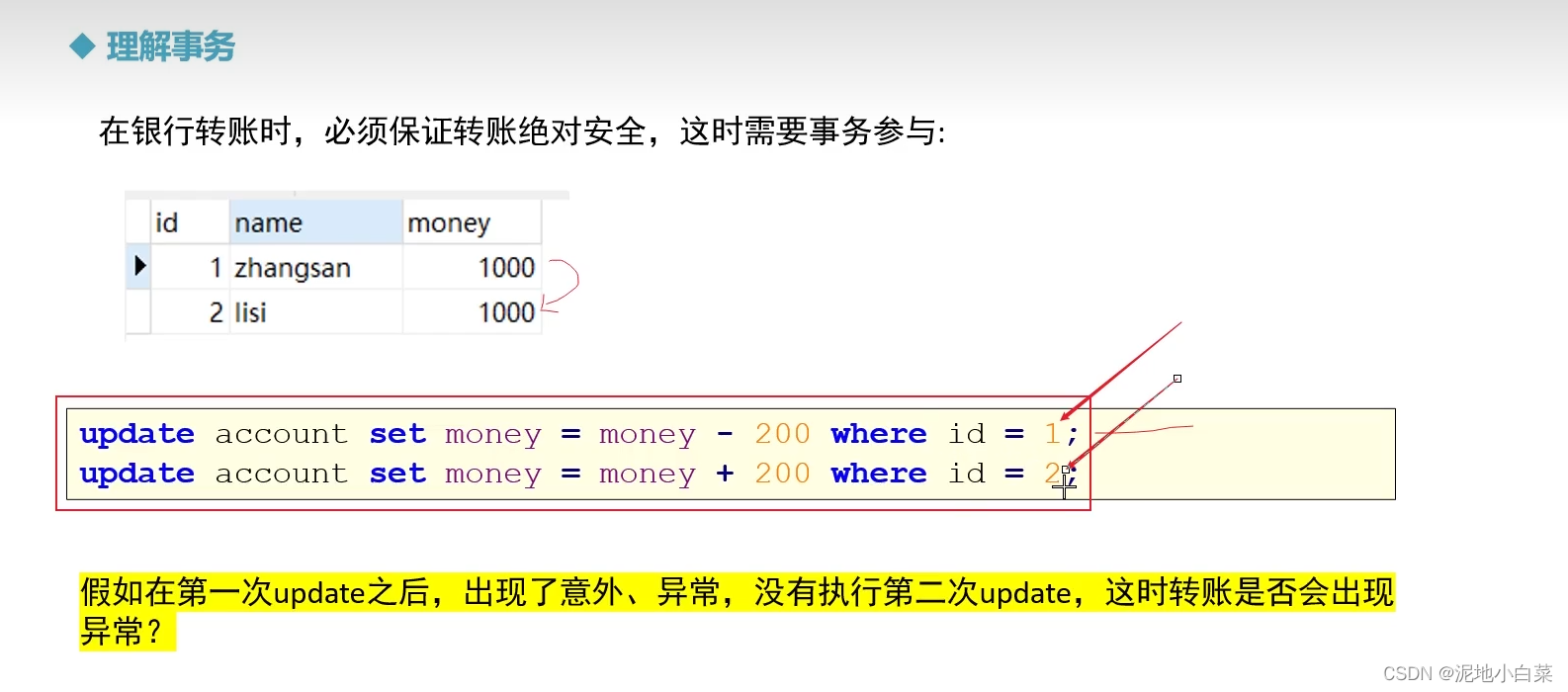 将这两条SQL语句捆绑为一个事务,两条语句要么全执行或者全不执行