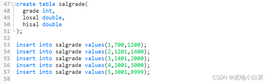 这里面涉及到了数据类型,如int,varchar,date等还有很多,数据类型是指在创建表的时候为表中字段指定数据类型,只有数据符合类型要求才能存储起来,使用数据类型的原则是:够用就行,尽量使用取值范围小的,而不用大的,这样可以更多的节省存储空间