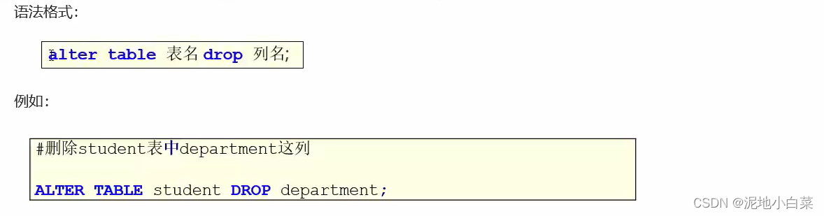 C.修改表删除列
