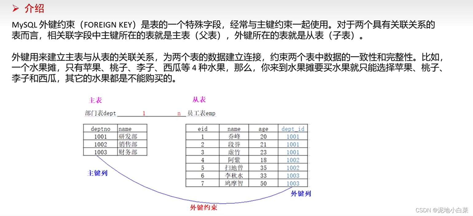 作用:表在设计的时候加入约束的目的就是为了保证表中的记录完整性和有效性,比如用户表有些列的值(手机号)不能为空,有些列的值(身份证号)不能重复