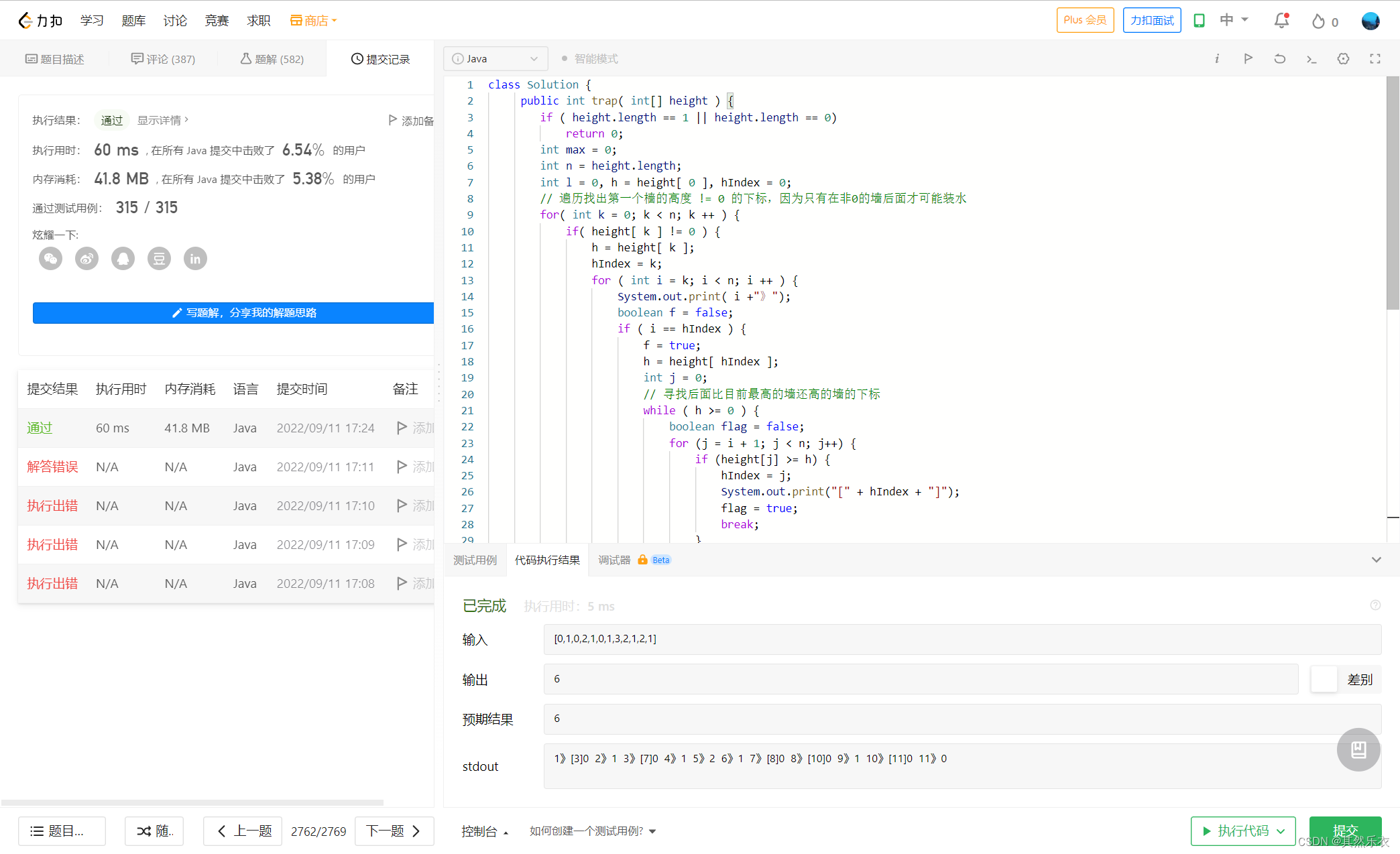 成功90%,最后一个用例显示解答错误,也不知道什么原因,也不应该是超时,因为我直接测试了最大范围的用例,运行时间27ms而已,哎不知道啥错误原因
