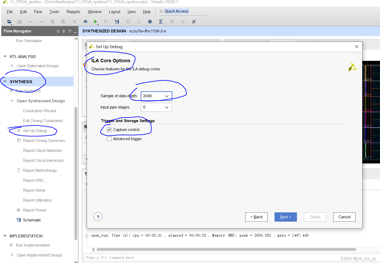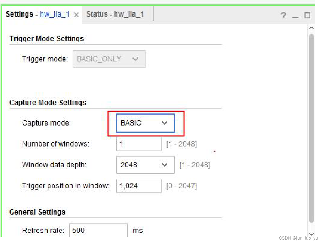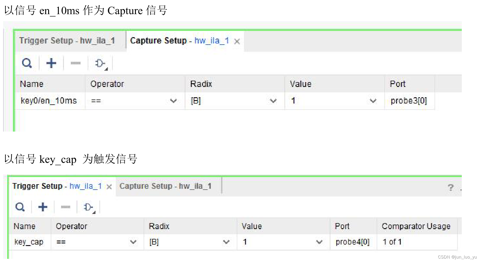 在线逻辑分析仪的采样深度,使用的是FPGA的BRAM,以及设置Captrue control,对于这种超慢信号,