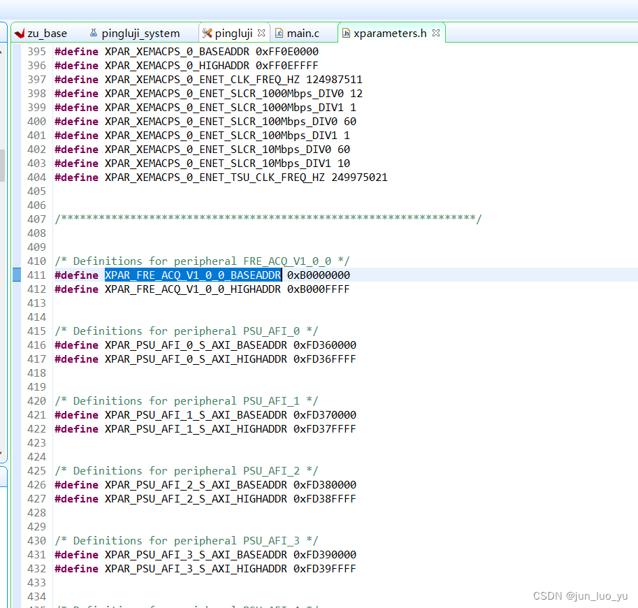 (29)自定义的AXI4总线需要定义地址 大概在xparameters文件中的410地址的位置处。