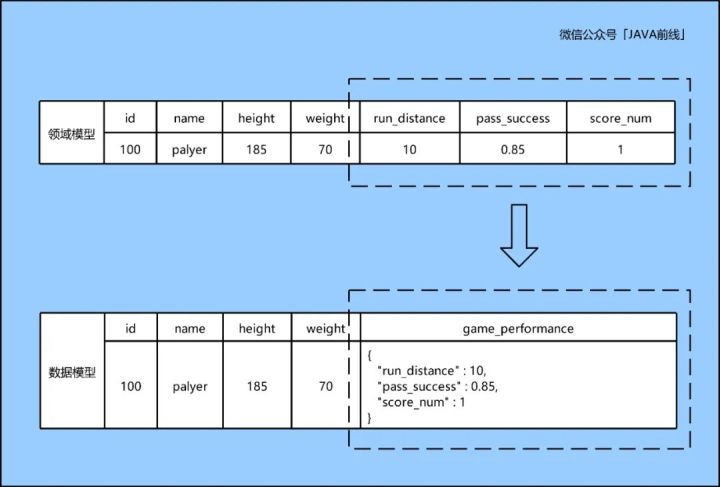 public class FootballPlayerPO { // 运动员ID private Long id; // 运动员姓名 private String name; // 运动员身高 private Integer height; // 运动员体重 private Integer weight; // 比赛表现(JSON) private String gamePerformance; // 创建人 private String creator; // 修改人 private String updator; // 创建时间 private Date createTime; // 修改时间 private Date updateTime; }