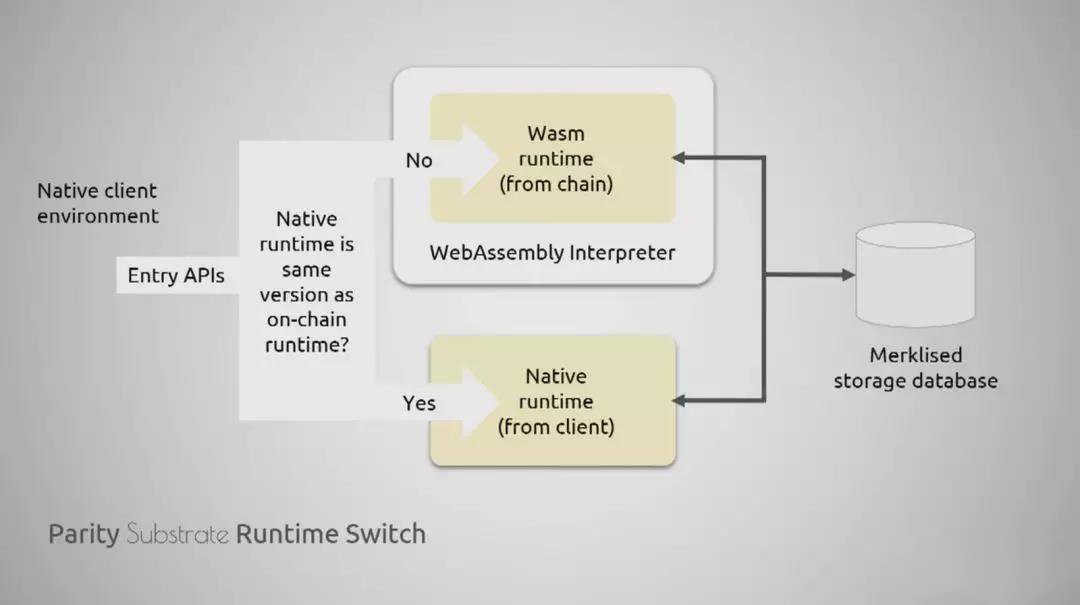 运行时的 WebAssembly 虚拟机。可以运行智能合约,或者其他基于 Substrate 开发的项目。 虽然你可以编写自己的虚拟机解释器,但我们坚信使用 WebAssembly 运行时的好处是,可以让你利用在 WebAssembly 社区的工作成果 ;