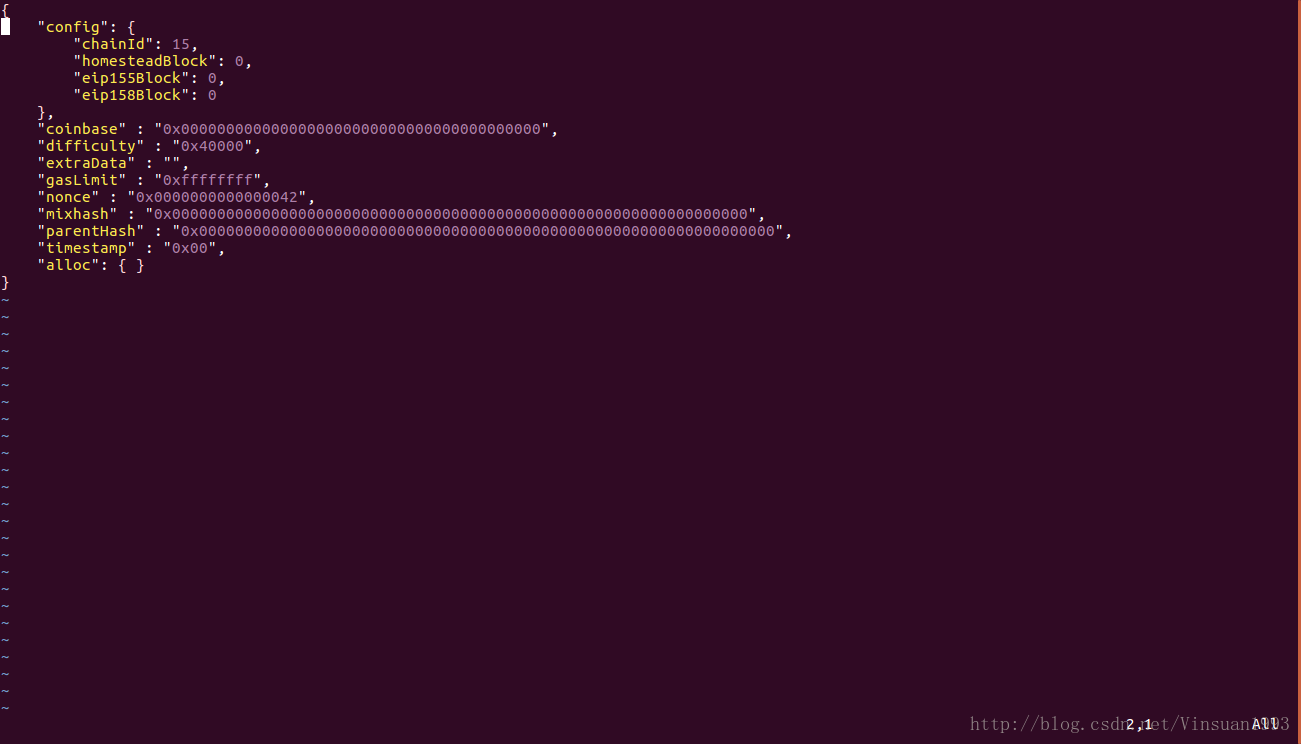 vim genesis.json(如果没有vim命令,可以安装,如图)