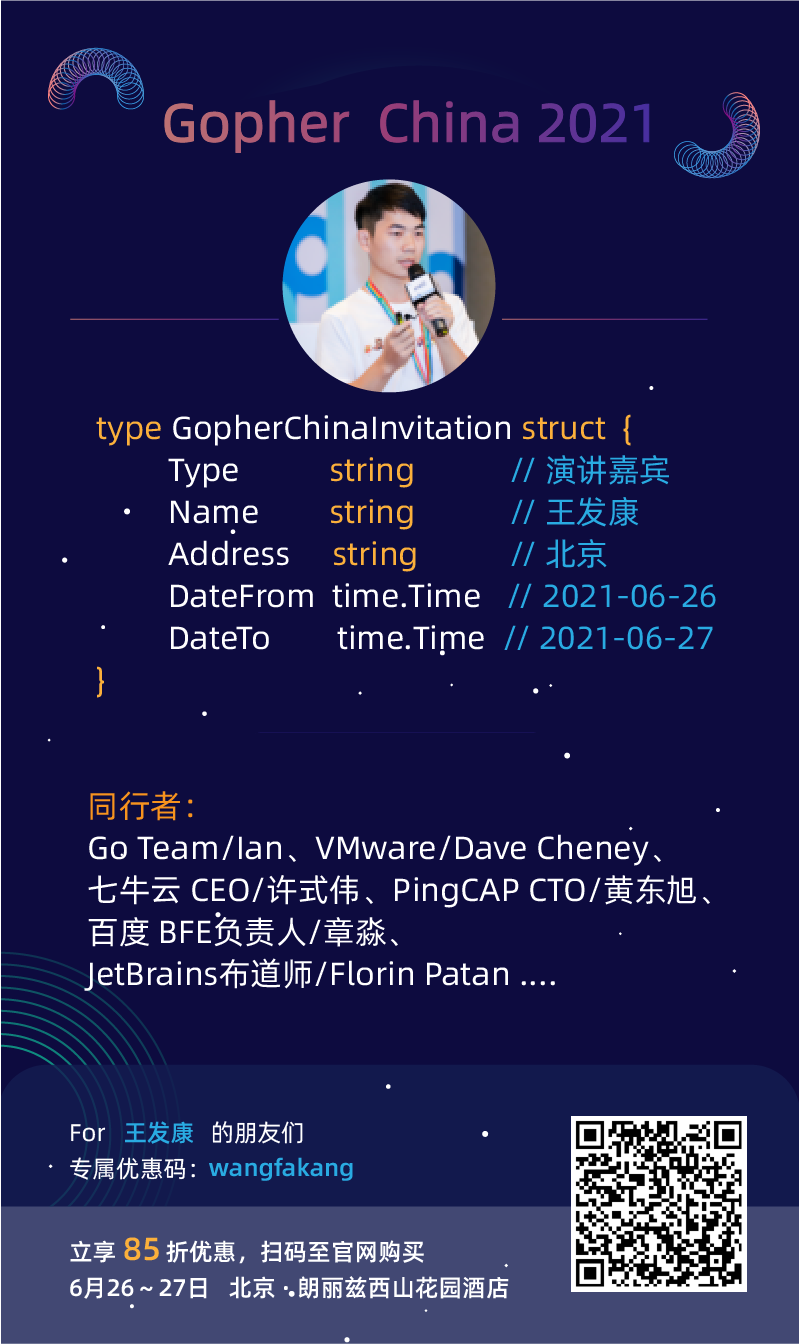 以上就是土豪星星最近收集整理的关于Gopher China 2021 讲师专访之王发康:Go 将在未来云计算行业成为不可动摇的语言...的全部内容,更多相关Gopher内容请搜索靠谱客的其他文章。