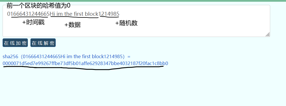 * 通过随机数nonce的递增,不断地尝试,得到符合要求的哈希值,使用SHA256加密