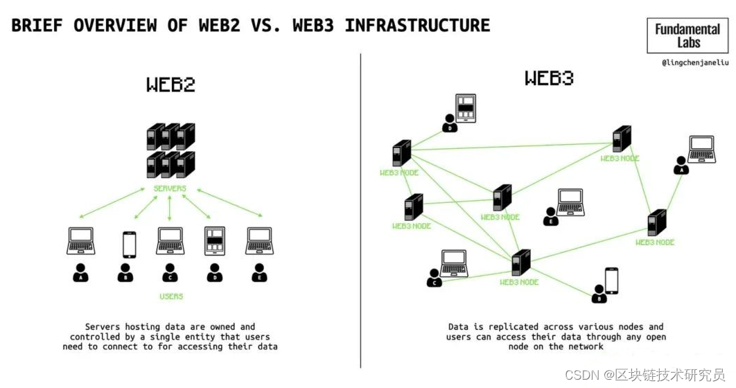 从本质上讲,数据存储在由独立节点组成的网络上,这些节点都各自确保只有数据所有者可以决定如何处理他们的数据。这与Web2云服务提供商控制的中心化服务器形成了鲜明的对比。