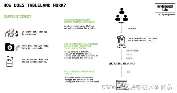 与Ceramic Network一样,Tableland试图解决以太坊虚拟机(EVM)智能合约中存储空间有限,且在链上更新、写入和存储数据的成本也很高的的局限性。