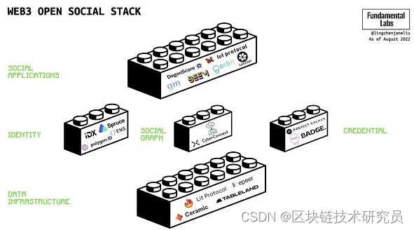 数据基础设施:包括去中心化存储以及为动态数据构建的、迎合社交应用需求的数据层。