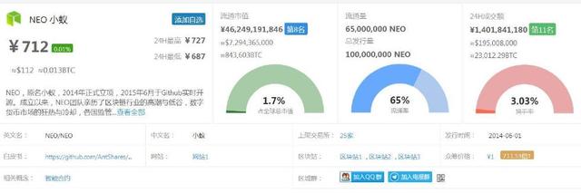 目前,NEO小蚁市价人民币700元左右,较发行价已上涨700倍,流通市值460亿元,排名全球第8名,市值较大。