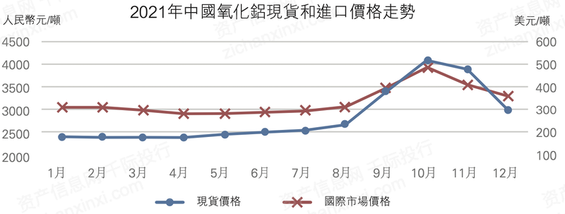 图 氧化铝国内现货价格及国际市场价格