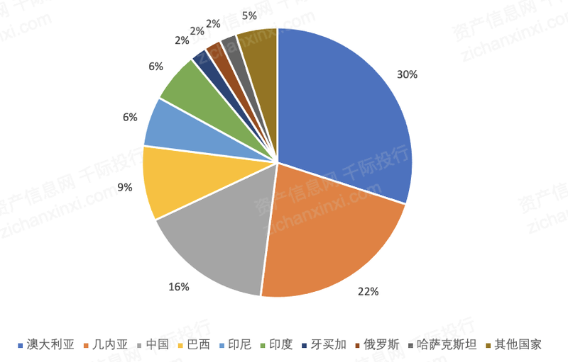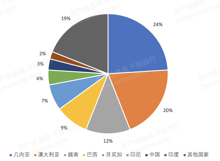 图 全球铝土矿产量分布