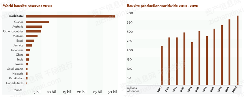 图 全球铝土矿储量及产量