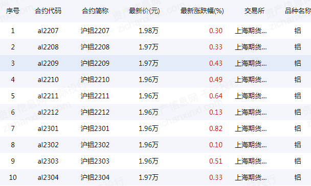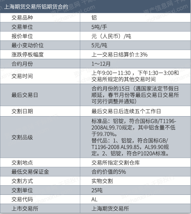 表 上海期货交易所铝期货和合约