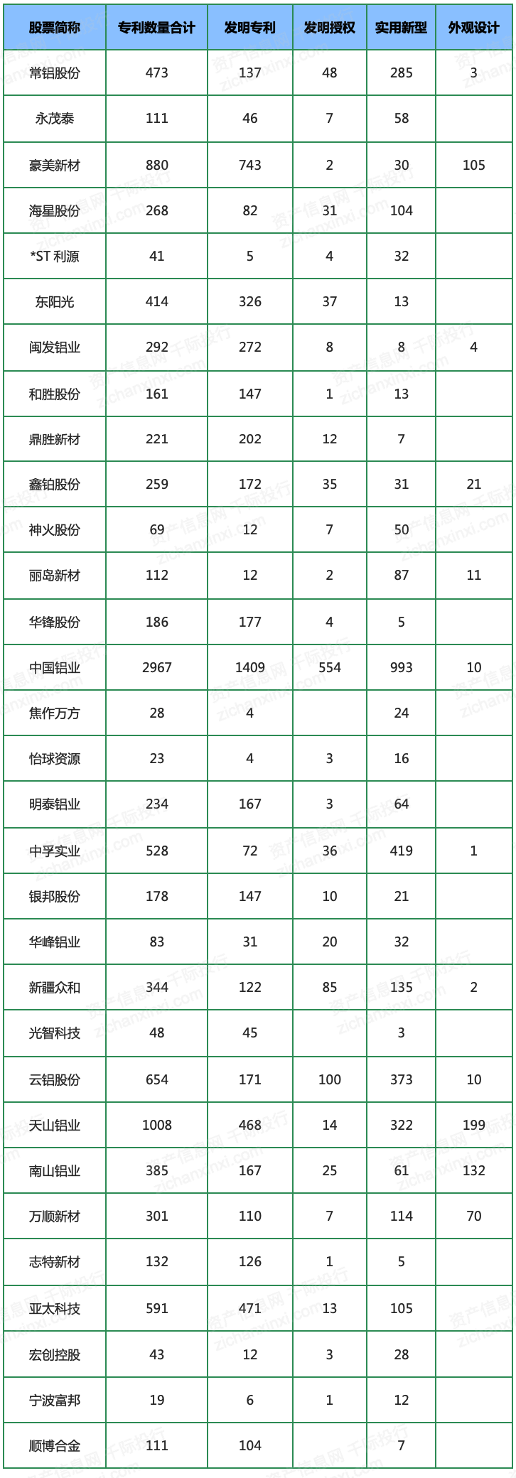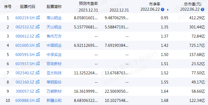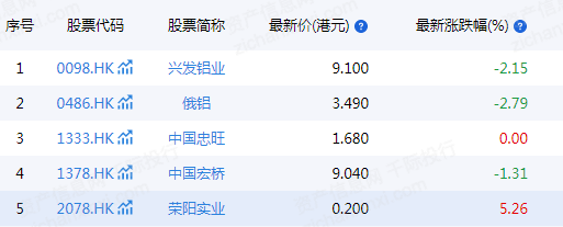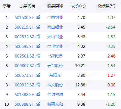 表 铝行业沪深成分股