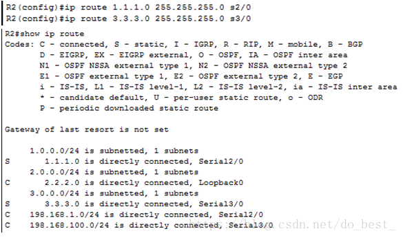 R3(config)#ip route 2.2.2.0 255.255.255.0 s2/0