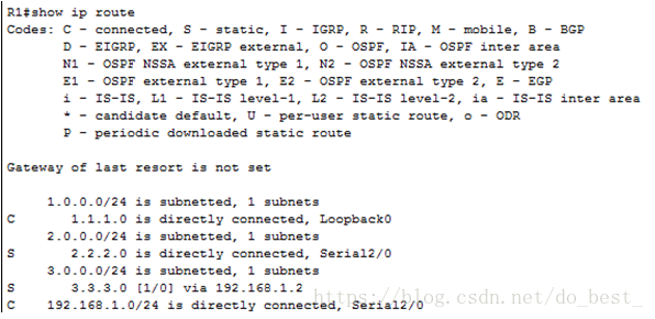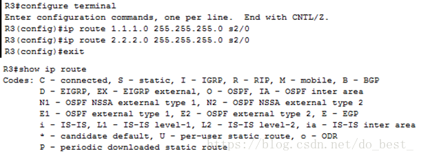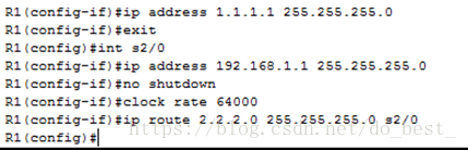 R1(config)#iproute 2.2.2.0 255.255.255.0 s2/0