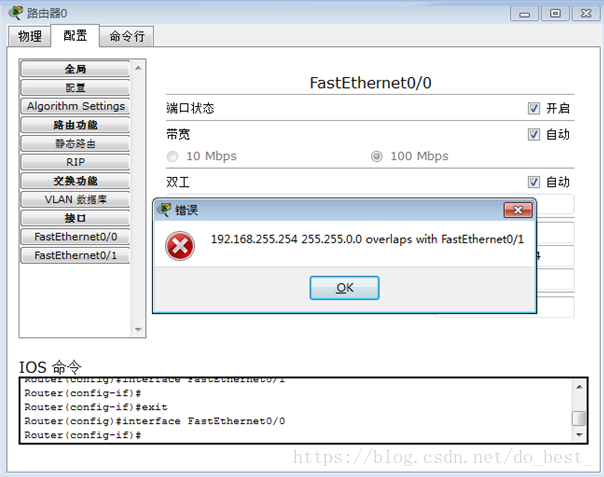 原因如下:路由器,以太口,不能配成与其它接口同一网段或有互相包含关系(以太-以太,以太-串行都不行)。串口之间可以,甚至同一地址都允许。路由器,毕竟设计来就是沟通不同广播域的。