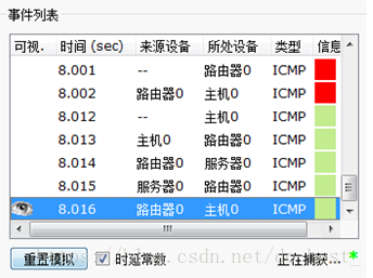 进入 Simulation(模拟)模式。Event List Filters(事件列表过滤器)设置为只显示 ICMP 事件。