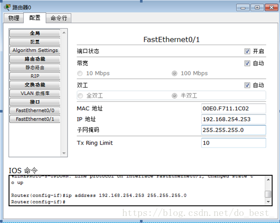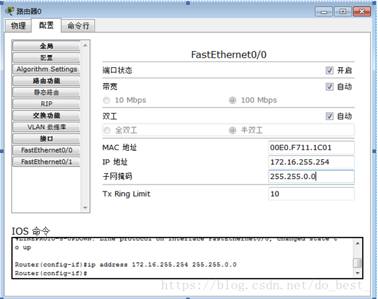 对路由器0进行配置:
