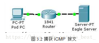 使用的网络中包含一台通过路由器连接到服务器的 PC,并且捕获从 PC 发出的 ping 命令的输出。