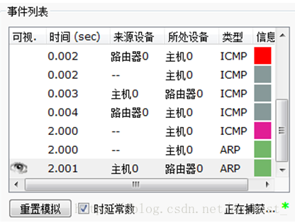 进入模拟模式。确认 Event List Filters(事件列表过滤器)只显示 ARP 和 ICMP 事件。