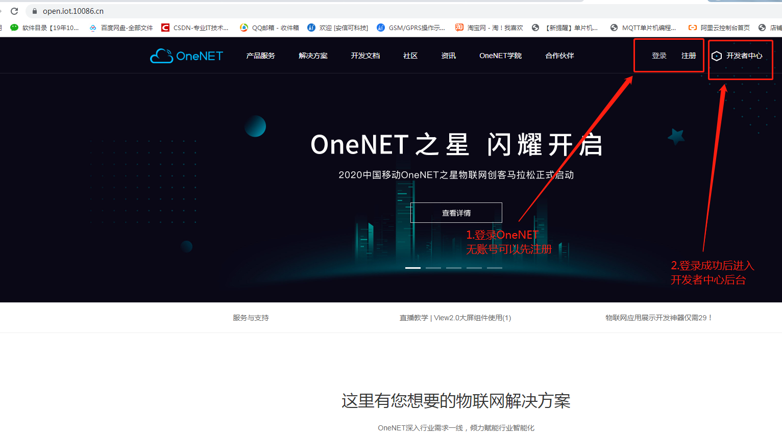 1.打开Onenet官网:OneNET - 中国移动物联网开放平台