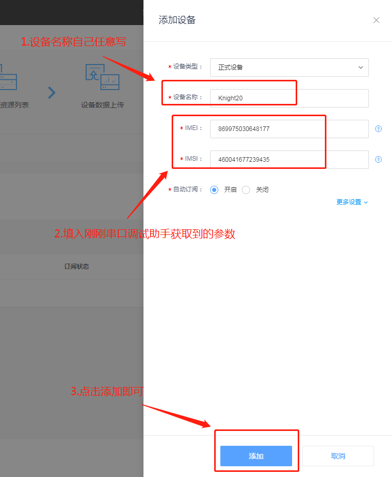 8.填写刚刚串口调试助手获取到的IMEI和IMSI,再点击保存即可:
