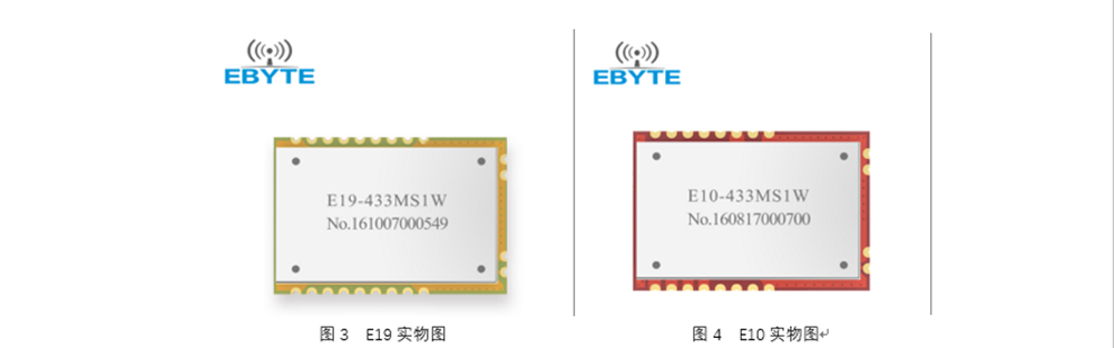 以E19-433MS1W和E10-433MS1W为例进行对比,主要从电气参数上面来了解此两款产品的不同,从而了解此系列的差异。