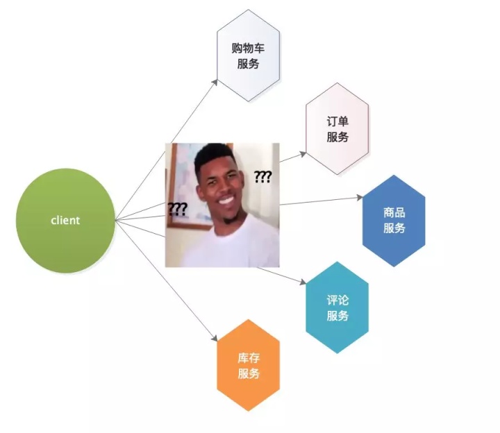 理论上每个服务都有端点可以访问,但是客户端就需要记录所有服务的端点,发起5次请求,现在还是5个服务,如果之后扩展多了呢?对客户端来说就是一个灾难,随之带来的就是安全性问题、扩展性问题等,所以这种客户端直接与每个服务交互是不可取的,通常,更好的方式是使用 API 网关。