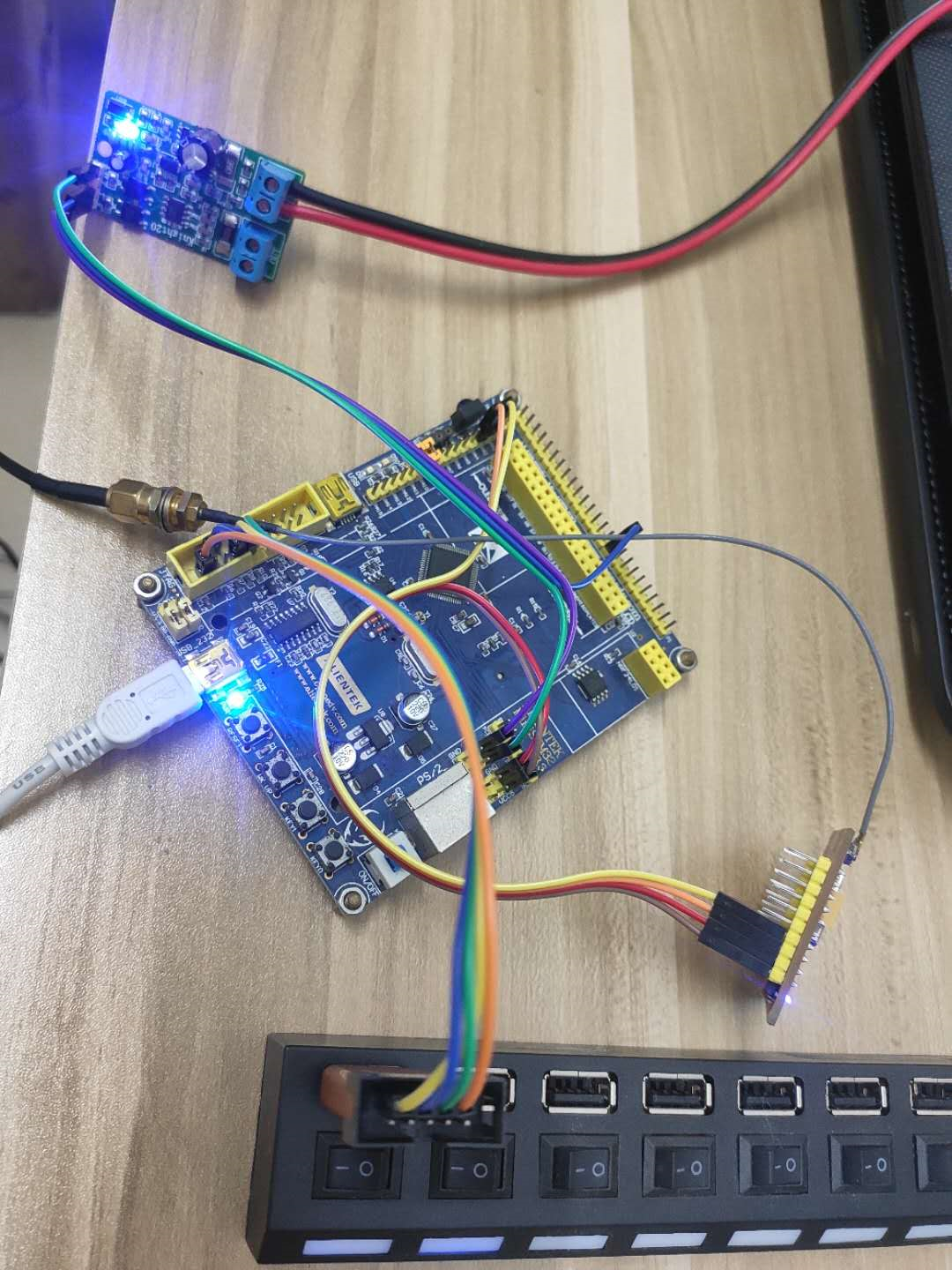 注:开发板的那个USB-232串口线需要接,用于串口调试及提供5V电压!!!