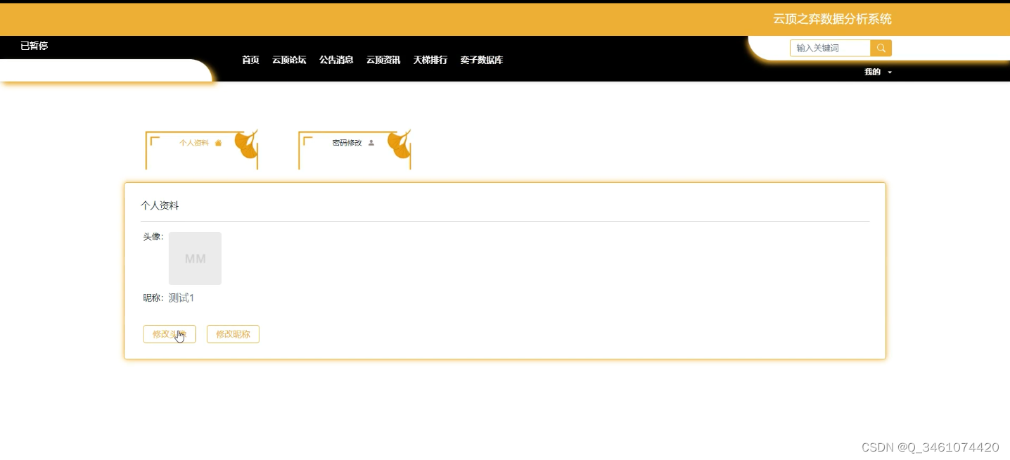 当点击导航栏上的“我的”的时候,就会进入对应的界面查看我的账户修改密码、个人资料,我的账户界面如下图4-4所示。