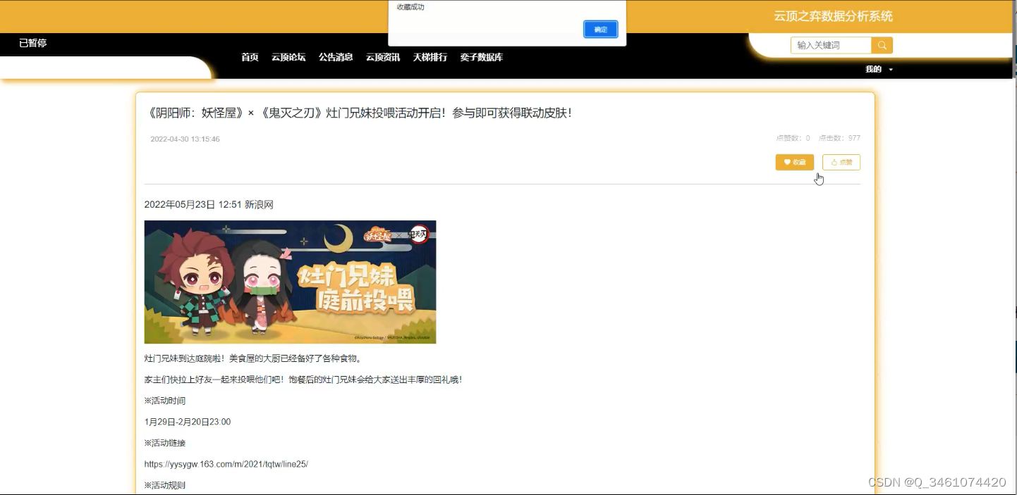 用户在点击导航栏上面的云顶资讯后,就可以搜索查看云顶资讯信息,用户根据自己的喜好可以进行查询、评论,云顶资讯界面如下图4-6所示。