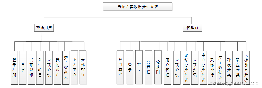 按照基于Python云顶之弈数据分析系统的角色,我划分为了普通用户管理模块和管理员管理模块这两大部分。