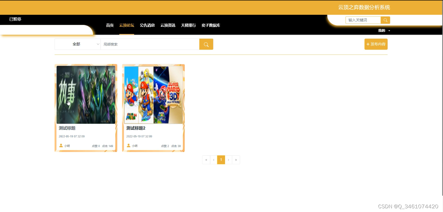 用户在点击导航栏上面的论坛后,就可以搜索查看论坛言信息,用户根据自己的喜好可以进行交流,云顶论坛界面如下图4-5所示。