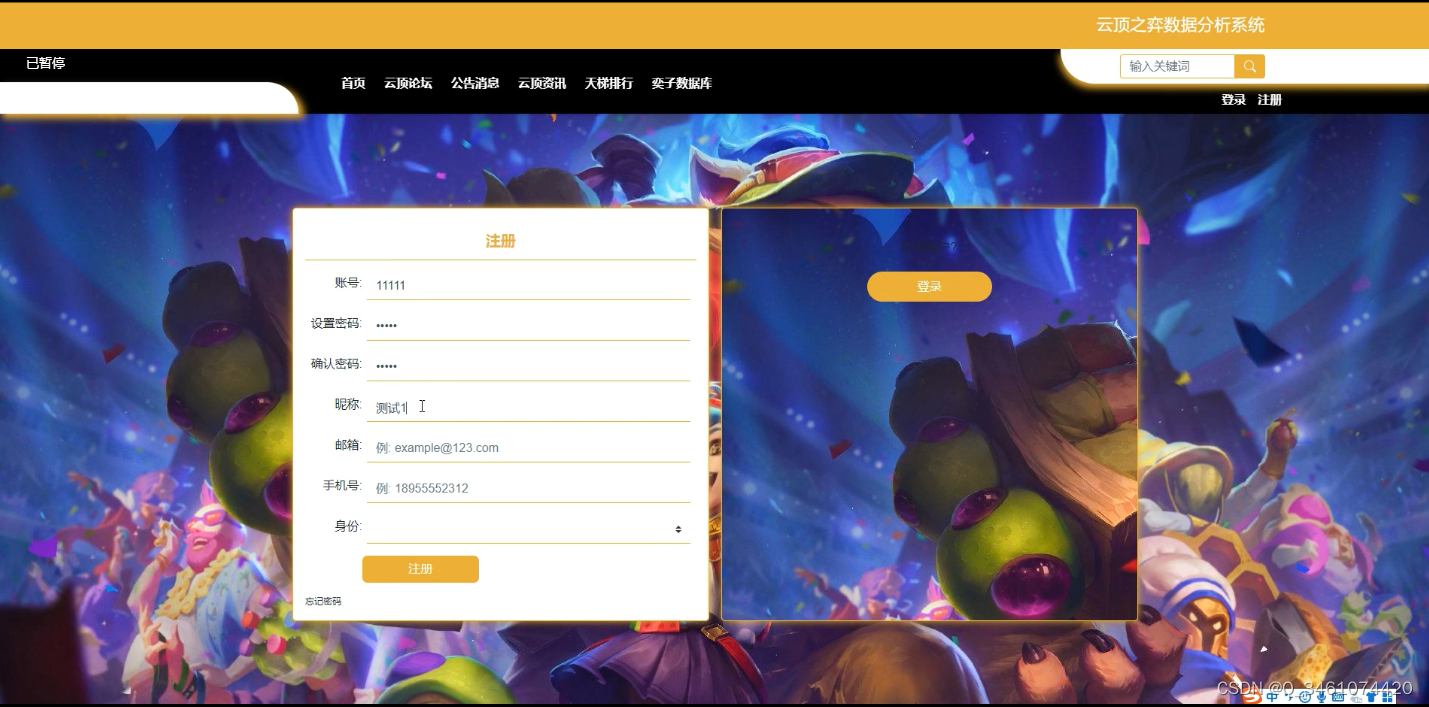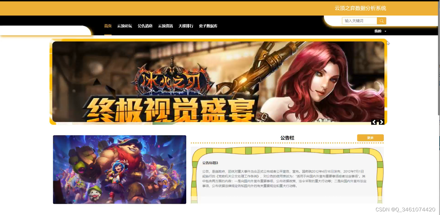 信息化社会内需要与之针对性的信息获取途径,但是途径的扩展基本上为人们所努力的方向,由于站在的角度存在偏差,人们经常能够获得不同类型信息,这也是技术最为难以攻克的课题。针对云顶之弈数据分析系统等问题,对云顶之弈数据分析系统进行研究分析,然后开发设计出云顶之弈数据分析系统以解决问题。
