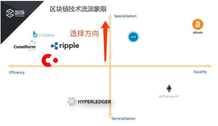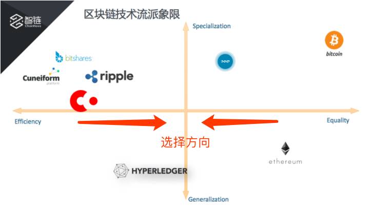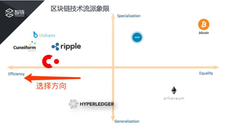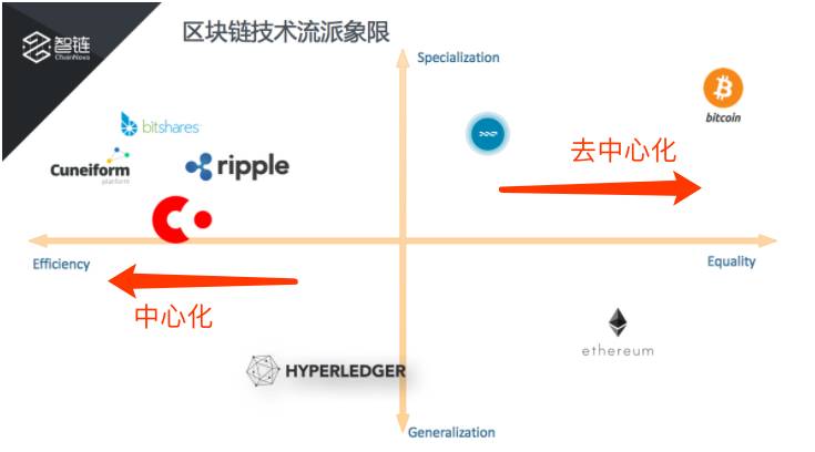 去中心化程度在象限图中以横轴体现,越靠右的平台越趋于完全去中心化,同时效率较低。越靠左的平台越趋于完全中心化,同时效率相对会高。