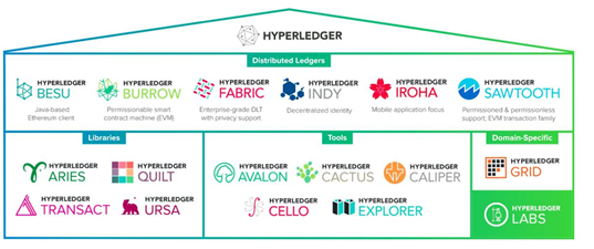 图:Hyperledger旗下项目,来源Hyperledger官网