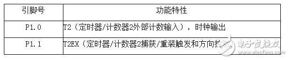 此外,P1.0和P1.2分别作定时器/计数器2的外部计数输入(P1.0/T2)和时器/计数器2 的触发输入(P1.1/T2EX),具体如下表所示。在flash编程和校验时,P1口接收低8位地址字节。