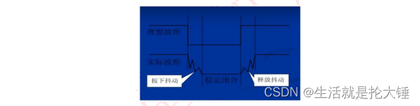 通常的按键所用开关位机械弹性开关,当机械触点断开,闭合时,电压信号如下图所示: