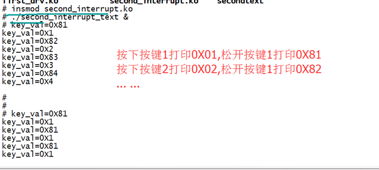 insmod second_interrupt.ko //挂载驱动设备