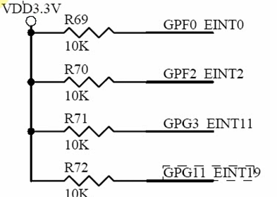 如下图,并申请中断,当有按键按下时,就进入中断服务函数buttons_irq()打印数据: