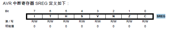 1、AVR中断寄存器SREG: