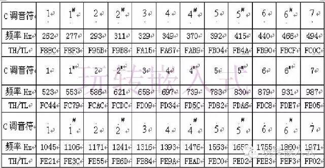 单片机只要通过定时器来定时翻转IO口就可以产生不同频率,从而控制无源蜂鸣器发出不同的声音。乐谱与频率的关系如下图所示: