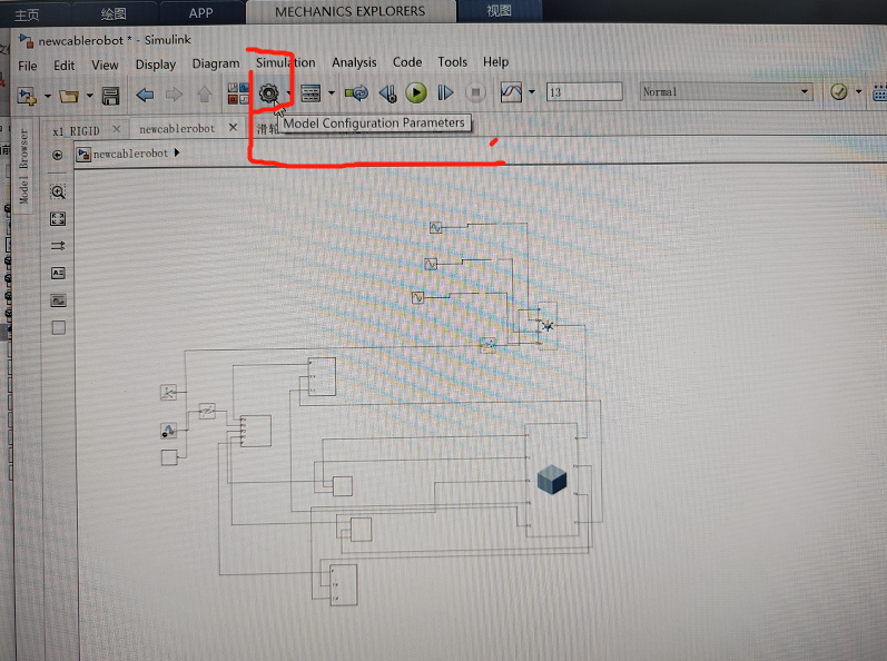 打开simulink模型文件,点击如图一所示的按钮,进入图二所示的界面,在solver一栏中的simulation time一栏中设置仿真起始时间。