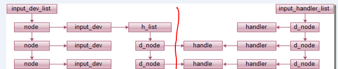 系统没调用一次input_register_device()函数就在input_dev_list链表上添加一个input_dev结构体,如下图左侧。