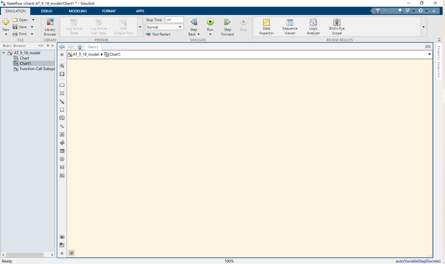 在simulink模块库里面找到stateflow,然后把chart拖出来。之后所有的逻辑实现都在chart块中实现。
